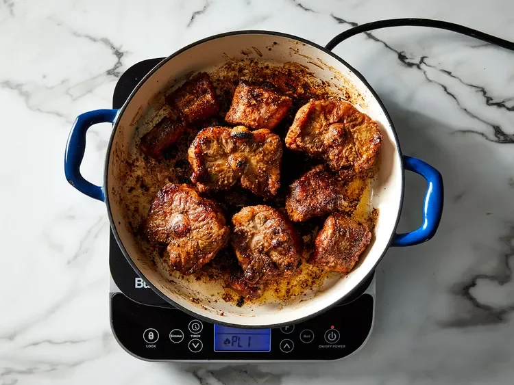 Heat vegetable oil in a large, deep skillet over medium-high heat. Sear oxtail in hot oil until golden brown, about 3 minutes per side; transfer to a plate and set aside.