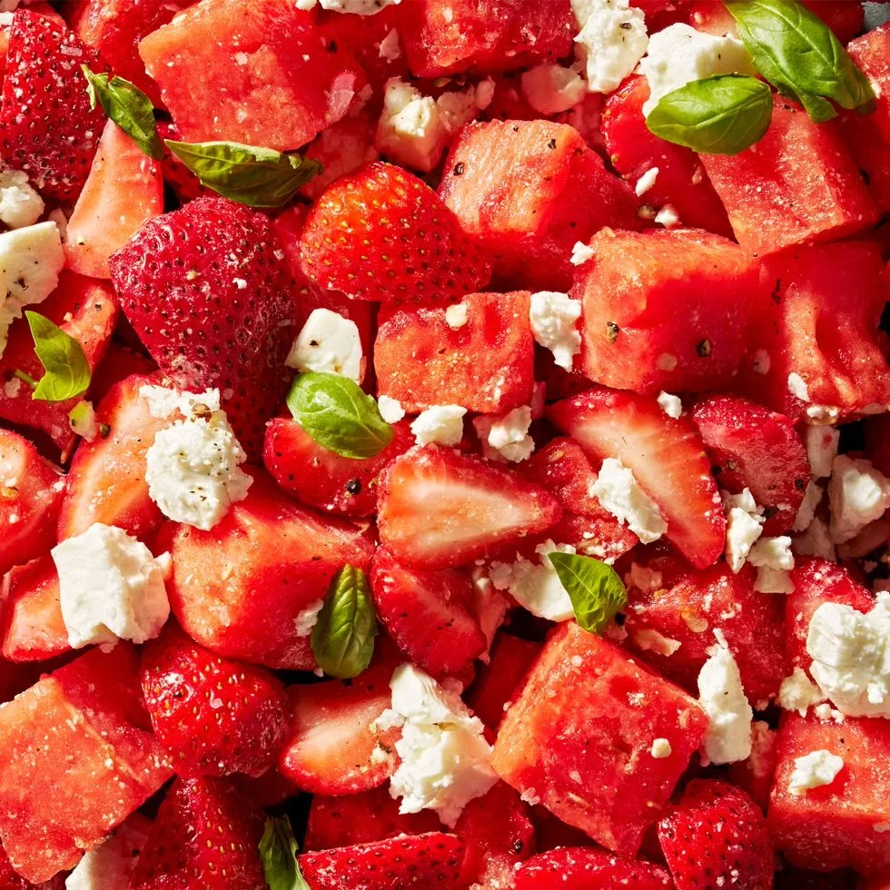 To create this best-of-both-worlds creation. Fresh strawberries have been added to juicy watermelon, tangy feta, and fresh basil for an extra-sweet summer treat. Pair with the simple olive oil dressing that ties everything together, and you've got the easiest, freshest side dish ready to devour in just 10 minutes.